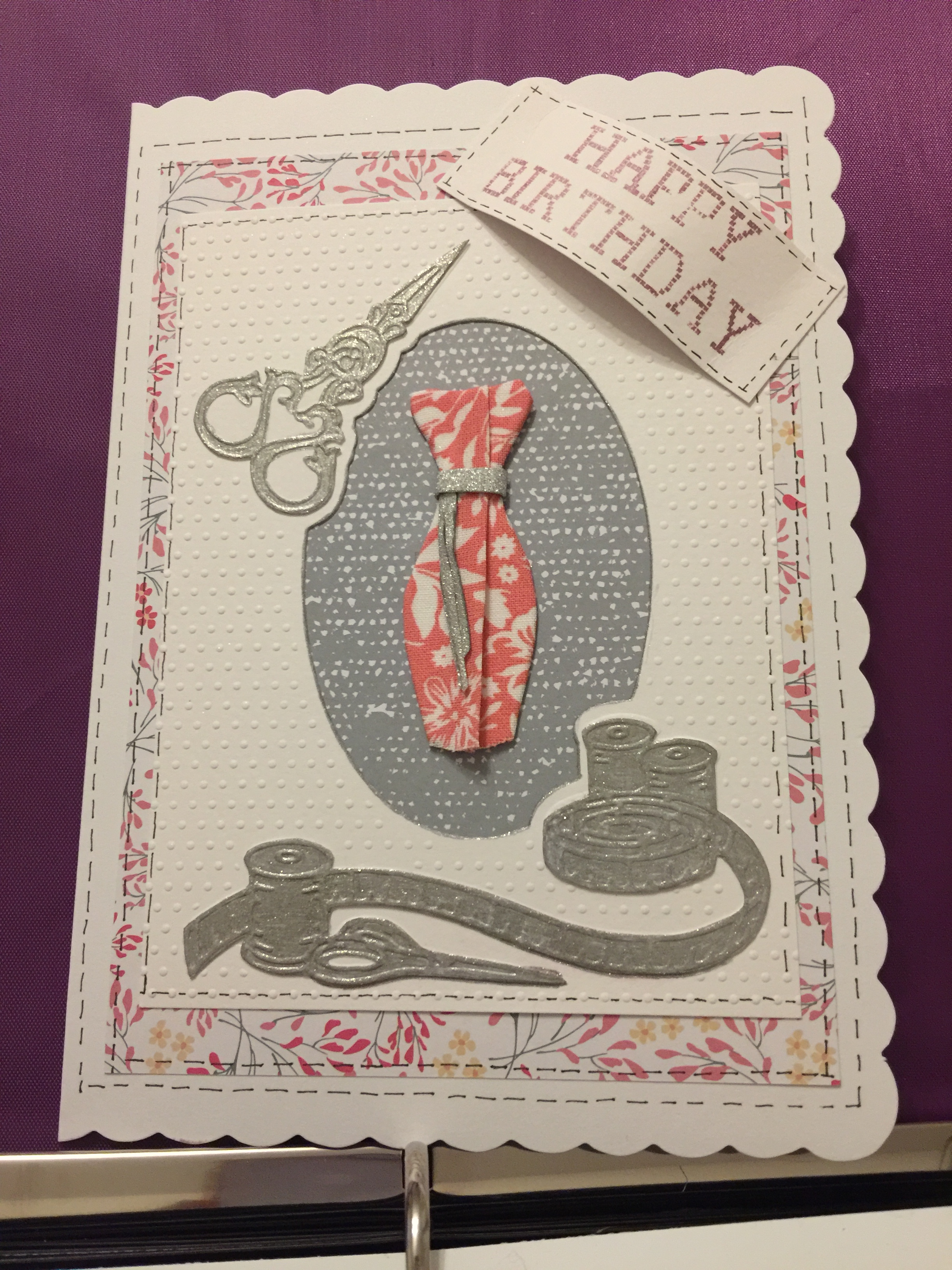 It took me a week to make three cards. The Birthday card using mainly Crafters Companion products called sew lovely.