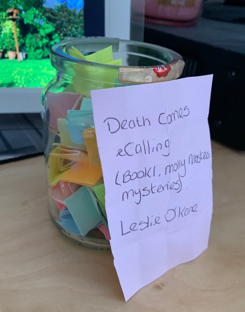 Book one was: Death Comes eCalling (Molly Masters Mystery #1) by Leslie O’Kane which I read in 2017.