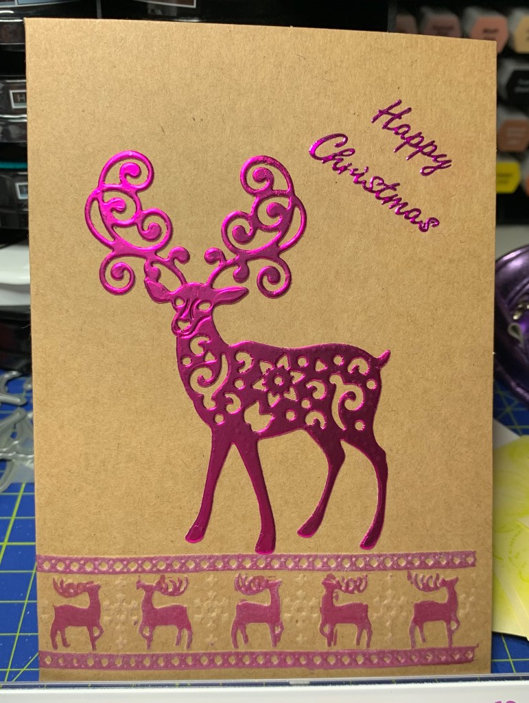 Die cut Reindeer Christmas Card this is one of the styles I sent out for Christmas 2019 to family & friends